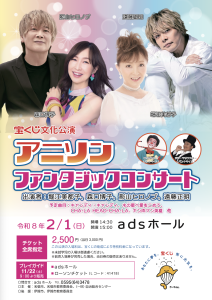 影山ヒロノブが、宝くじ文化公演「アニソンファンタジックコンサート」に出演いたします。